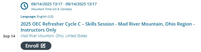 Our OEC Instructor Refresher date is September 14th as listed in our events calendar which is when we will be refreshing ourselves and preparing to teach the regular refresher.